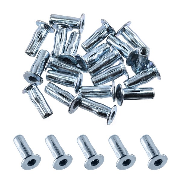 Keadic 20Pcs M4 Multi-Grip Rivet-Nut Pre Bulbed Threaded Inserts, Zinc Plated Flat Head Slotted Nutsert Fasteners for Construction Industrial
