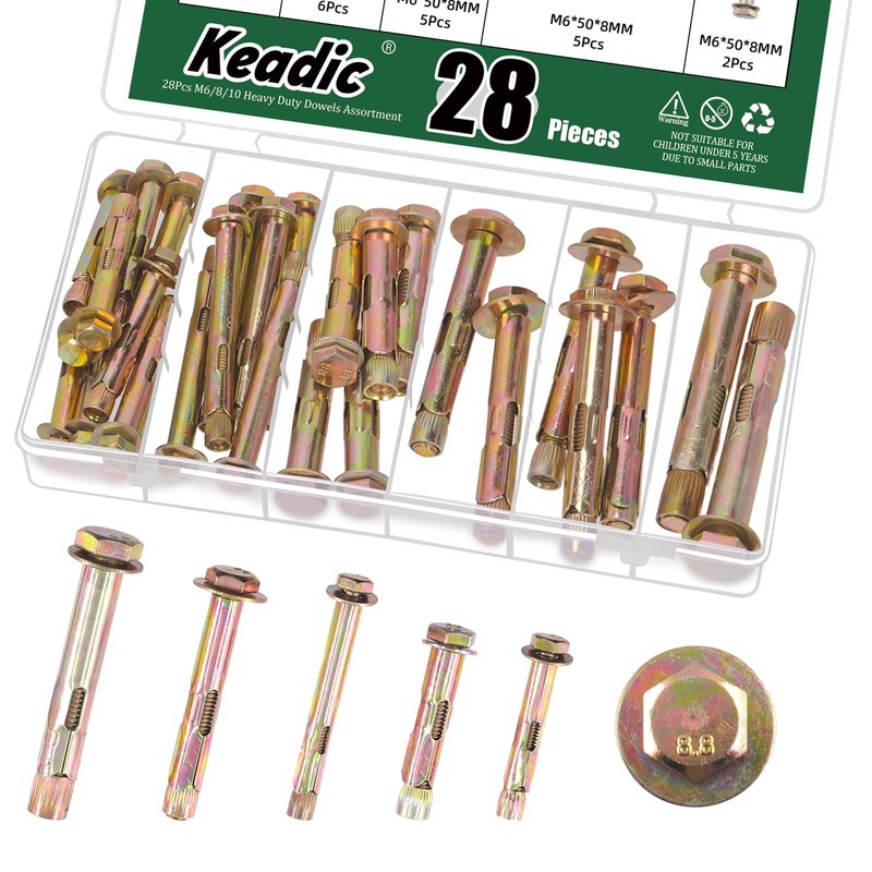 - 👍【What You Will Get】The set includes 28 sets of anchor screws, 10 sets of M6 x 8 x 50 mm (must open 8 mm), 6 sets of M6 x 8 x 70 mm (must open 8 mm), 5 sets of M8 x 10 x 50 mm (10 mm holes are required), 5 sets of M8 x 10 x 70 mm (10 mm holes are required), 2 sets of M10 x 12 x 80 mm (12 mm holes are required). In other words, it's the same.