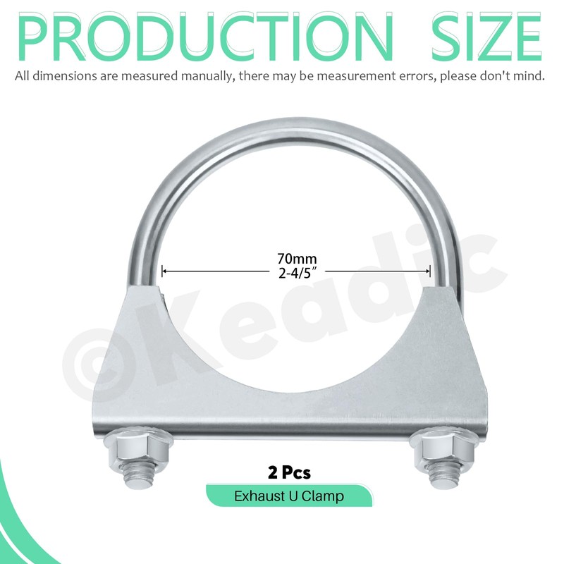 - 【Package and Size Information】You will receive 2pcs 2-3/4" (70mm) zinc plated u-bolt clamps, which measure about 2-3/4" (70mm) in inside diameter. Suitable for 2-3/4" (70mm) in outer diameter exhaust pipe!