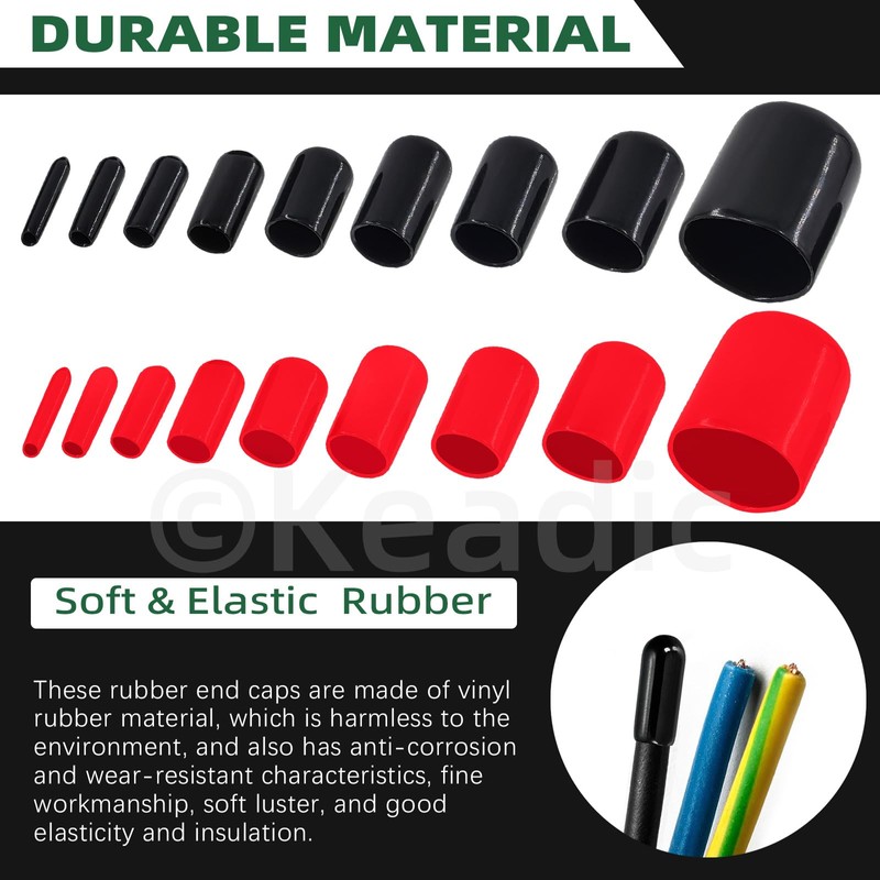 • 🌸【Multiple Size and Colors】Vinyl rubber end caps come with 9 different sizes and black/red 2 colors, which are 2mm x 16mm, 3mm x 16.2mm, 4.5mm x 16.8mm, 6mm x 17.1mm, 7mm x 16.8mm, 8mm x 17mm, 9.5mm x 21.3mm, 12mm x 23mm, 20mm x 29mm. Assortment sizes of round tube bolt cap can meet your protecting of screws or other threaded parts.