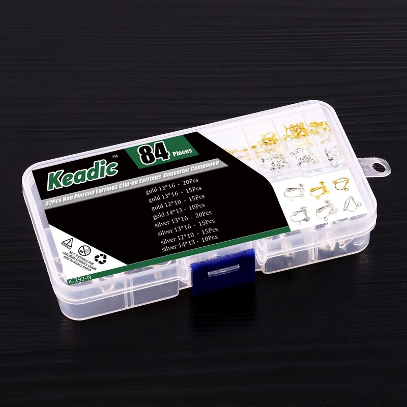 - [Various Earring Converter Kit] The clip on earring converter assortment set contains 36pcs/18pairs of 4 different style earring post converters in gold and silver to meet your different earring DIY projects. Different style and color earring converters are packaged in a compartmentalized plastic box to avoid confusion.