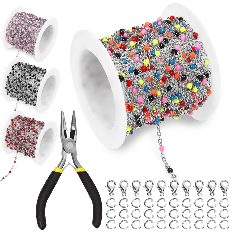 - 【Stainless Steel Cable Chain】 You will receive 1 roll of 5m/196.85inch colorful steel cable chain, 10pcs 10mm/0.39inch x 6mm/0.24inch lobster clasps, 30pcs 4mm/0.2inch open jump rings and 1pc jewelry making pliers, totally 42pcs. Sufficient quantity will meet any different jewelry making needs.