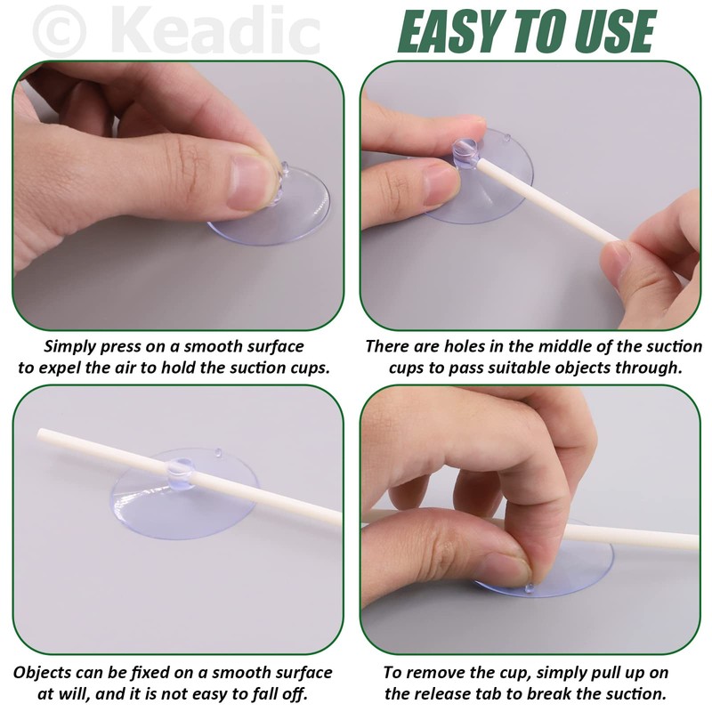 - 【Easy to Operate without Damage】Simply to Stick: ① Keep both suction cups and surface clean and dry. ② Stick the suction cup and release the air by pressing the edge of the cup a few times. Easy to Remove: pull up on the release to break suction, clean the suction cup by soap water and dry it with cloth for next use. Strong power and no residue left on the surface without any damage to the surface.