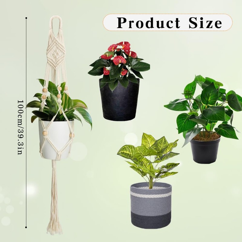 - PREMIUM QUALITY MATERIAL: These plant hangers are made of high quality cotton rope, purely hand-woven, simple and delicate, ensuring long-lasting strength and durability, can hold pots of all shapes and sizes.
