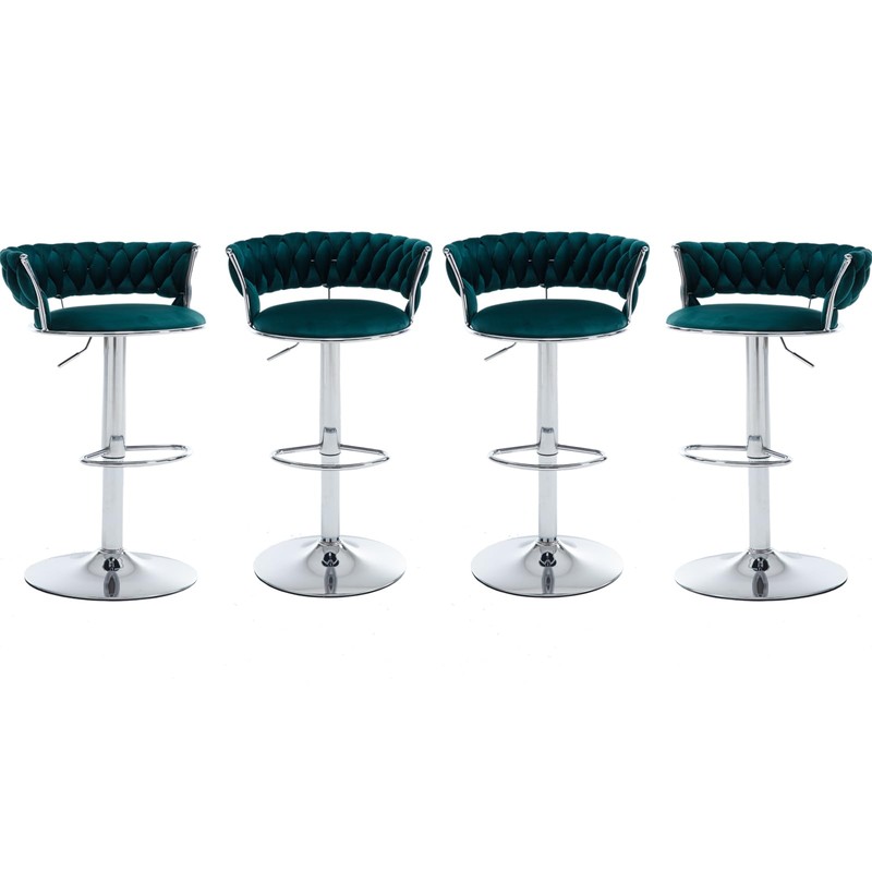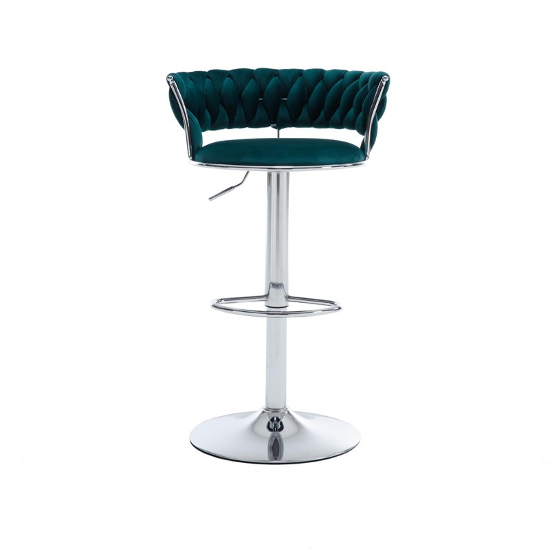 Keainvren Velvet Wave Hollow Barstools Set of 2, Modern Adjustable Swivel Bar Height Chairs Counter Stools with Back for Home Bar Kitchen Island Dining Rooms (Green, Set of 2)