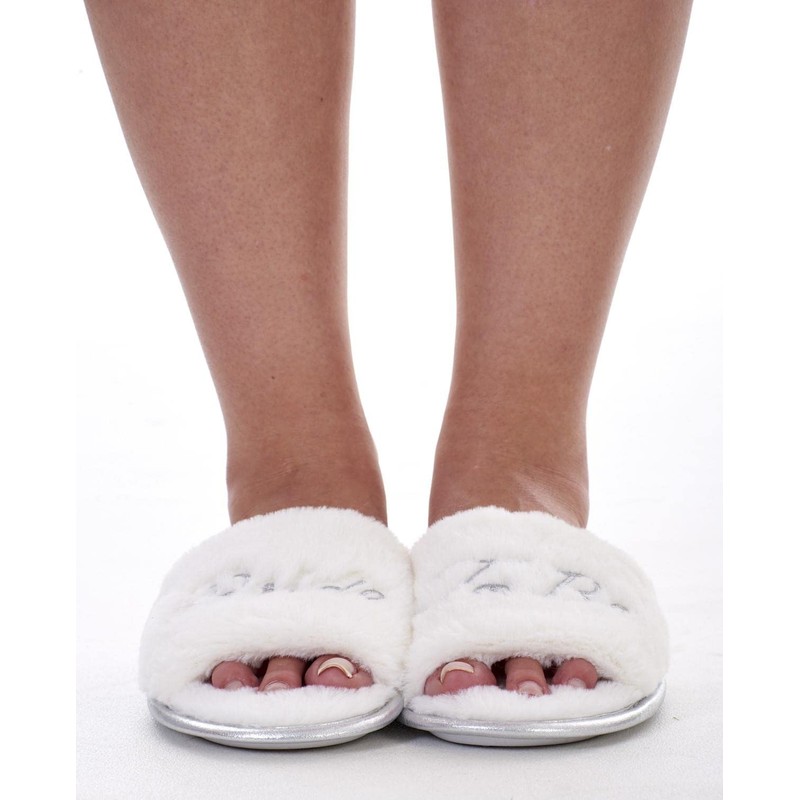 - SUPERSOFT: Super Soft Faur Fur Slippers with Glittery Bride to Be emblazoned on the slipper and matching glitter outline, perfect for adding extra luxe to the big day!