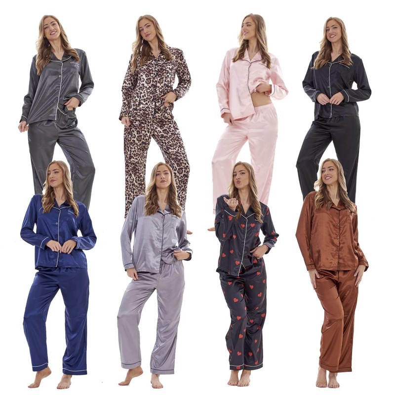 - PERFECT GIFT: Ribbon-packed and gift-ready, these pyjamas make an ideal gift for loved ones. Available in a range of beautiful colors and designs, including Black, Navy, Brown, Grey, Pewter, Pink, Leopard Print, and Heart Print to suit different tastes and preferences.