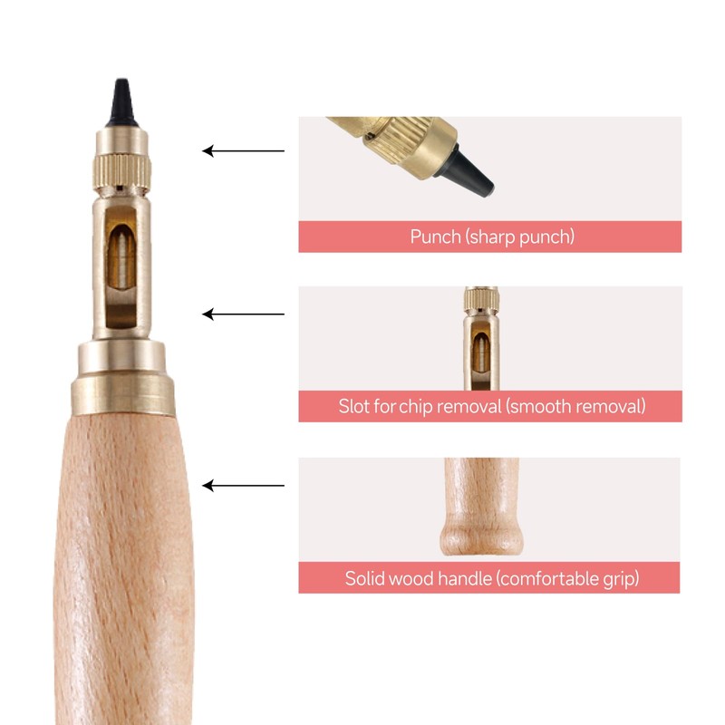 Kearing Screw Punch, Adjustable Leather Hole Punch with 6 Sizes (1.5mm,2.0mm,2.5mm,3.0mm,3.5mm,4.0mm) with Wood Handle for Paper, Leather