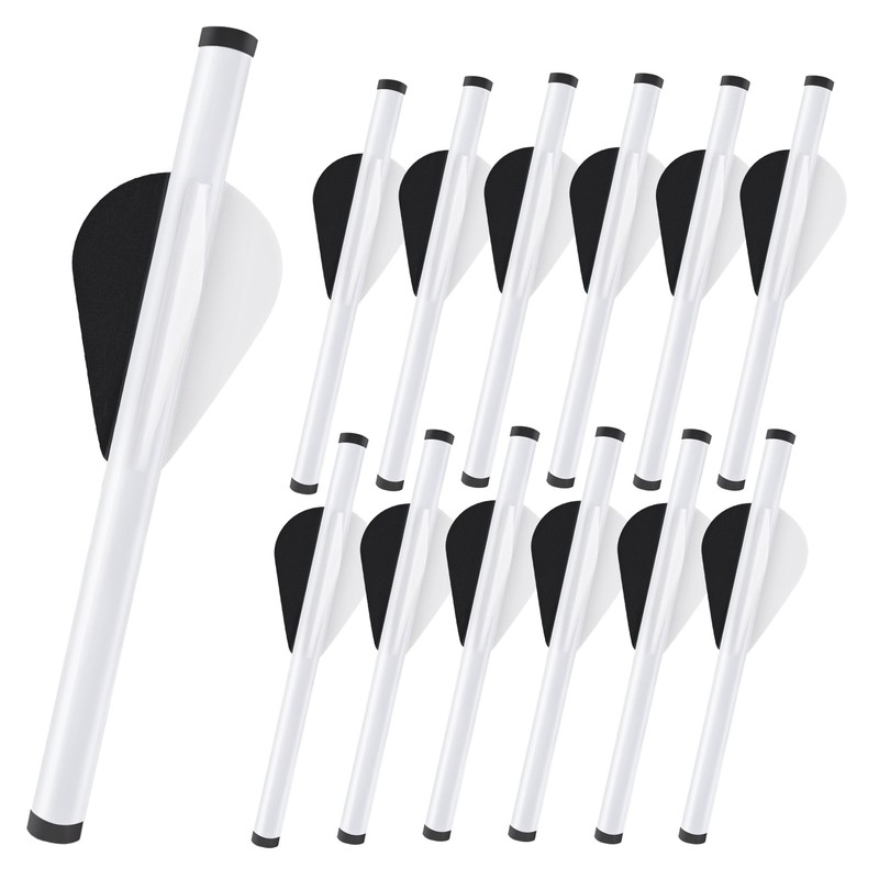 - Arrow Fletching Kit: 12 Pack. Shrink tube length 5.47 Inch, white tube with 2 black+ 1 white 2" Vanes. Store in a cool place until use