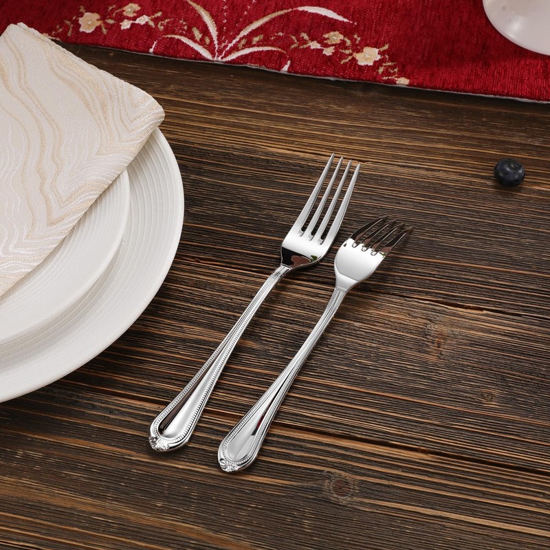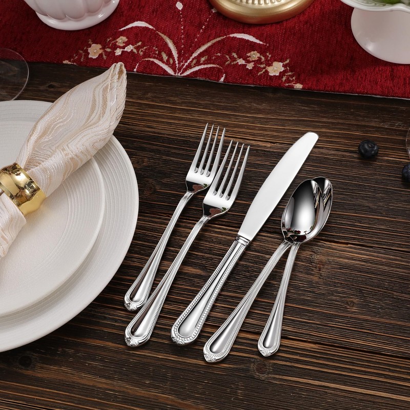 - 💎Elegant Design: The set boasts a timeless bead design on both sides and a brilliant mirror finish, adding a touch of sophistication to any table setting. The pearled edge enhances the elegance, making it perfect for both formal dinners and casual meals.