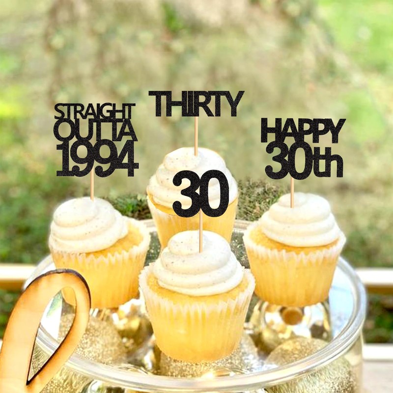 Keaziu 48 Pack black Straight Outta 1994 Cupcake Toppers Happy 30th Cupcake Toppers Thirty Cupcake Toppers 30 Years Birthday Party Decoration