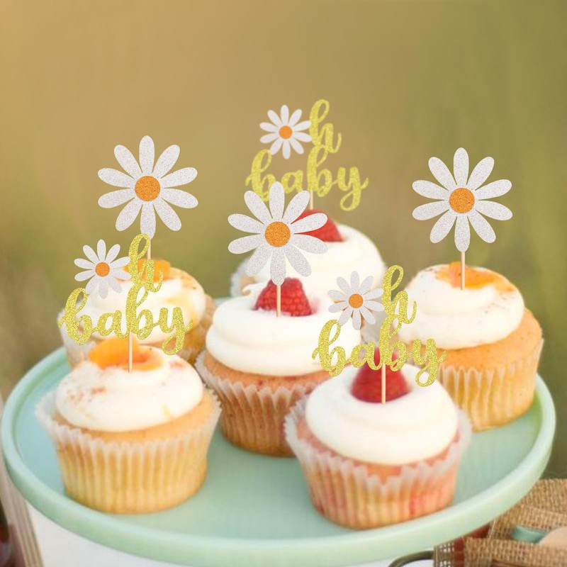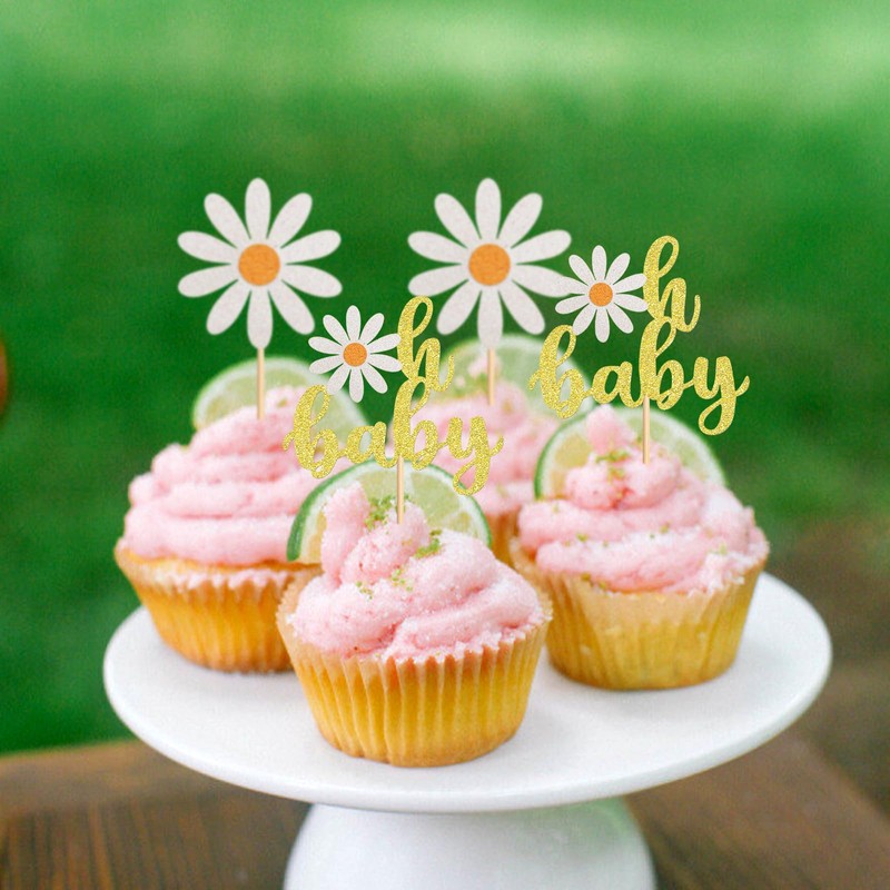 Keaziu - Paquete de 24 adornos para bebé, margaritas, decoración de fiesta de cumpleaños, decoración bohemia, decoración de pasteles, decoración de flores, baby shower, fiesta de cumpleaños