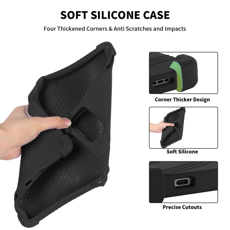 Kebiory for KADYBE D115/ANTEMPER/kimlok 2024 10.1 Tablet Android 13 Silicone Case Kids Friendly with Stand for ANTEMPER ZONKO D115/YOSAVlOR YQCP20/Vortex TAB10/DOOGEE T10 T10S T10 Pro Tablet (Black)