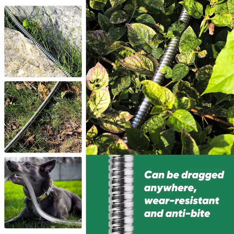 - Metal hose: The shell of the garden hose is made of high-quality stainless steel metal, which feels good to the touch and will not rust. At the same time, it can effectively protect the soft inner pipe so that the inner pipe is not easy to break and leak. Garden hose can withstand animal gnawing, can be dragged on various surfaces such as grass, concrete, bushes and stones.