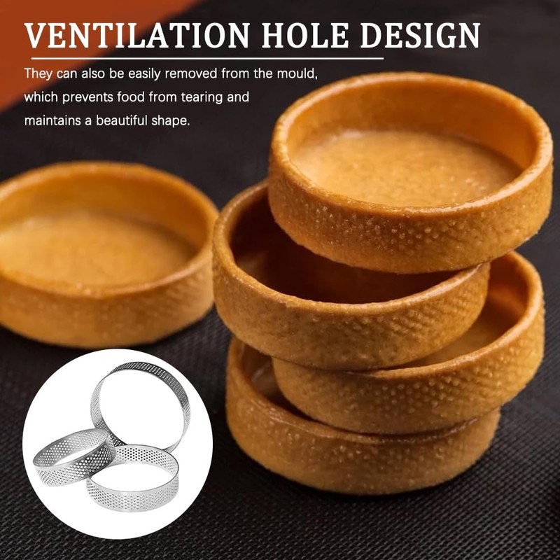 2. 8cm Metal Circular Tart Rings adopts a circular ventilation hole design to ensure air circulation without leakage. The surface of the cake ring is non-stick coating, which is easy to use, breathable and easy to clean.