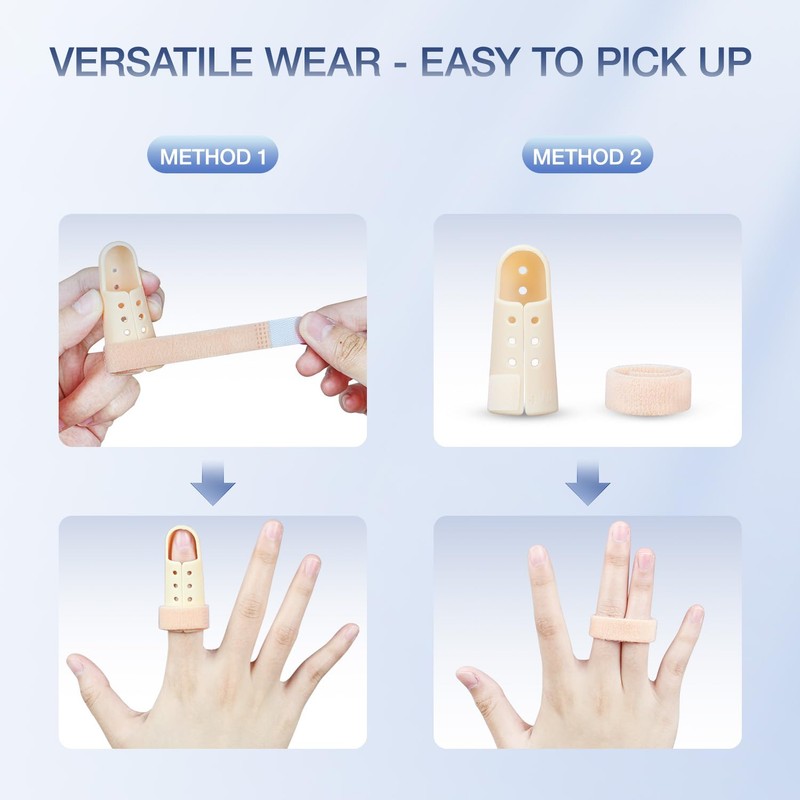 • [Suitable for All Fingers] You will receive a combination of 5 sizes finger brace stabilizers and fit well for thumb, index, ring, middle and pinky finger of both adults men and women, and can be worn on either left or right hand.