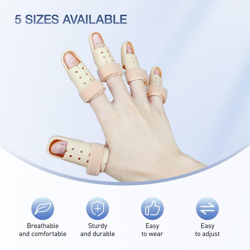 • [Free Adjustment] The 5 size pack finger brace can adapt to different fingers, freely adjust the tightness and pressure according to the thickness of the fingers. This adjustable finger straightening brace is suitable for thumb,index, medium, ring and pinky fingers.