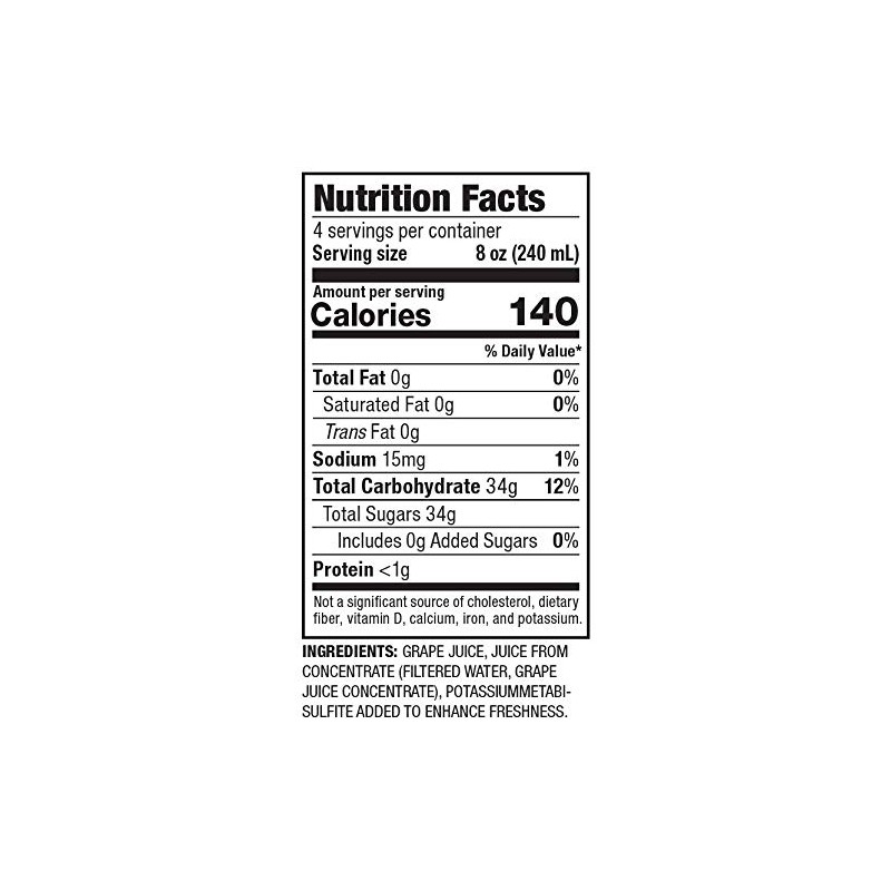 - 100% pure grape juice Made from 100% US Concord grapes.