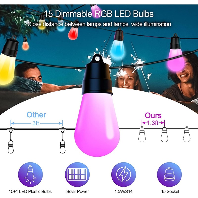 - Durable Shatterproof Design: Featuring 15 robust shatterproof Edison bulbs, these string lights are built to withstand the elements, ensuring long-lasting performance and safety in any outdoor setting