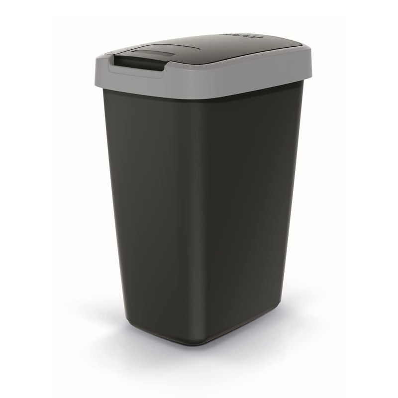 Keden Compacta Q Rubbish Bin with Swing and Hinged Lid, 12 L, Plastic Waste Separation, Waste Container, Recycling Waste Bin (Black/Smooth Grey)