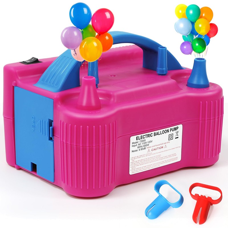 - 【Easy to Use】: Inflate different sized balloons thanks to the practical Dual-nozzle design, makes it faster to blow up balloons. (This product requires an external power supply)