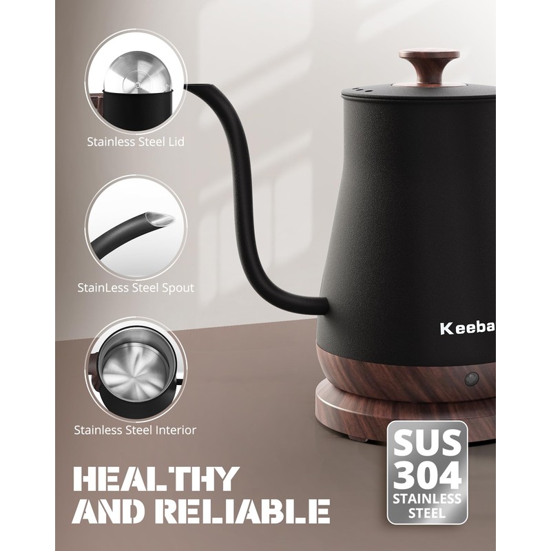 - 1000W FAST BOILING - Keebar electric kettle comes with a fast and powerful heating element, you can be sure that your water will be ready in just minutes, this top-quality electric tea kettle is designed to provide you with hot water quickly and efficiently, making it ideal for brewing the perfect cup of coffee or tea.