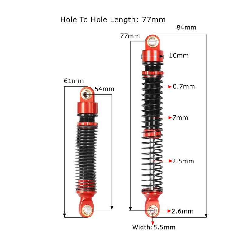- 【Find Your Perfect Fit】With a selection of 5 sizes (53mm, 59mm, 65mm, 71mm, 77mm), our RC oil threaded damper designed to fit seamlessly with most popular 1/12 1/18 RC crawler models. Upgrade your RC crawler's performance today
