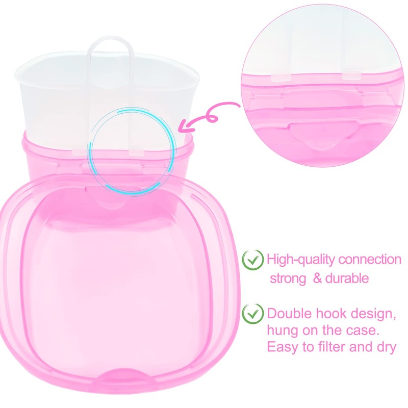 - Basket with Hole and Hook: Denture storage case is fitted with a detachable drain basket which helps drip the wet dentures and dry them quickly without spilling the liquid anywhere else