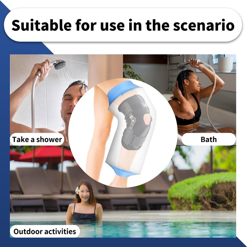 • Waterproof Knee Cover for Shower After Surgery. We adjust the softness of the silicone, achieving softness and elasticity. Without the limitness of the plastic ring, you can pull the silicone as wide as you can. Soft and high elastic silicone seal can reduce the risk of cutting your limb blood.