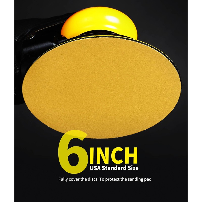 It is recommended to match the corresponding 6-inch 6-hole sanding pad and connect it to the dust collection vacuum system. If you can often use abrasive cleaning stick wiper during use, the Sanding will be better.