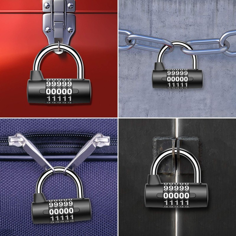 5-digit combination padlock provides 100000 combinations, it's safer than 4-digit combination lock. You can set your own password with your favorite numbers.