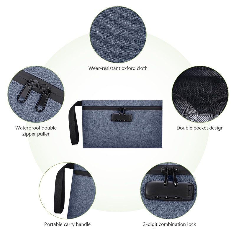 KeeKit Money Bag with Combination Lock, 13 x 8 Inches Waterproof Men & Women's Locking Accessories Pouch, Portable Carry Handle Bag for Bank Deposits, Travel, Credit Cards – Blue