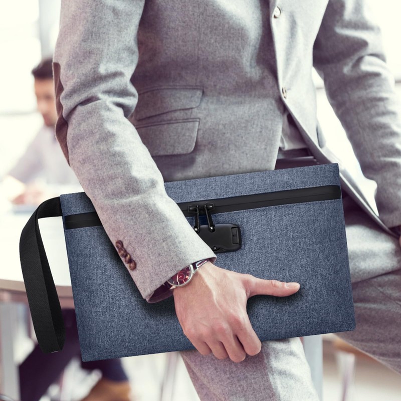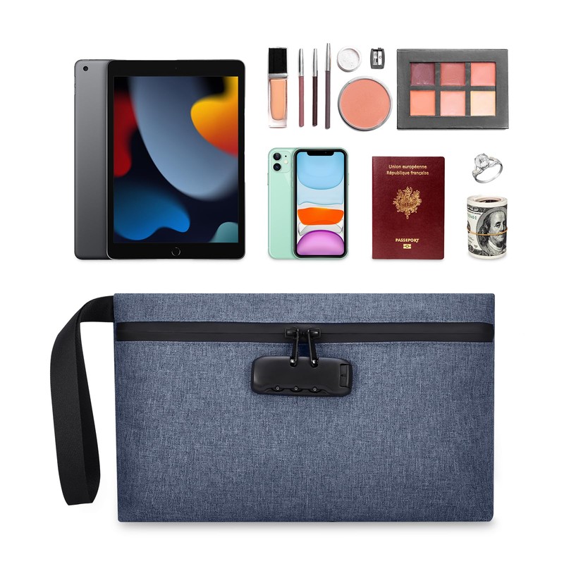 KeeKit Money Bag with Combination Lock, 13 x 8 Inches Waterproof Men & Women's Locking Accessories Pouch, Portable Carry Handle Bag for Bank Deposits, Travel, Credit Cards – Blue