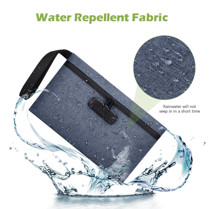 Product Description 1. It can remove peculiar smell, and can also be used as an ordinary document bag or storage bag, and it is more secure with a password. 2. You can put cash, bank deposits, wallets, medicines, phones and credit cards, cash, passports, and other valuables. 3. This odor-resistant bag has a handle for easy portability. Come with waterproof zipper, high quality slider. EASY TO SET COMBINATIG 1.The original number is 0-0-0 2.Push the resettable button 3.Set your own password by urning the dials 4.Push the button