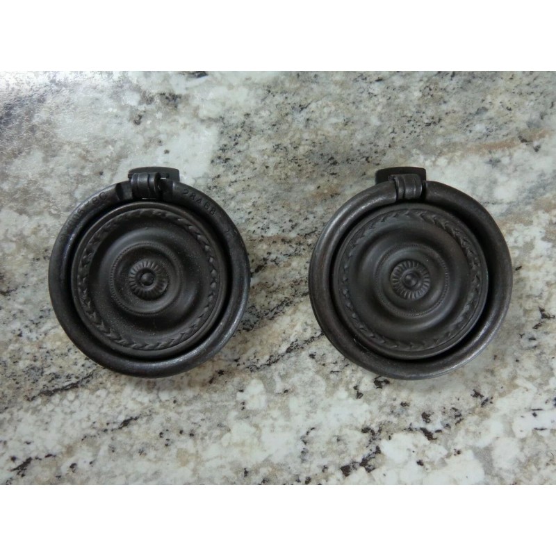 Keeler Brass Set of 2 Two-Part Round Ring Pulls Black Finish Arts & Crafts Mission Style