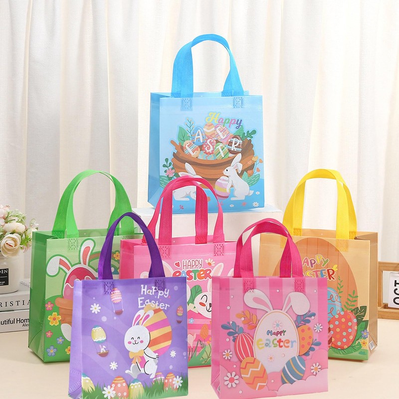 - Set contents: you will receive 6 Easter gift bags. Material: non-woven fabric. Colour: blue, purple, pink, green, yellow. Size: 23 x 22 x 11 cm (without the height of the handle)
