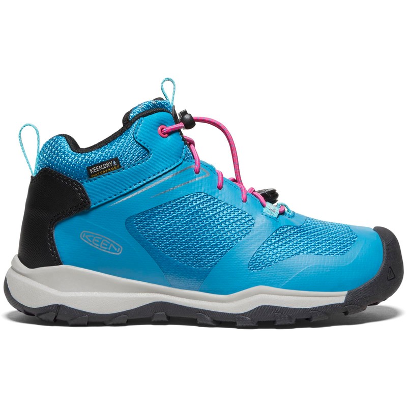 KEEN Wanduro Mid Height Waterproof Easy On Durable Sneaker Hiking Boots, Fjord Blue/Fuchsia Purple, 5 US Unisex Big Kid