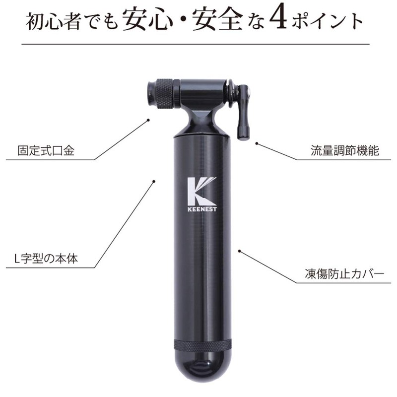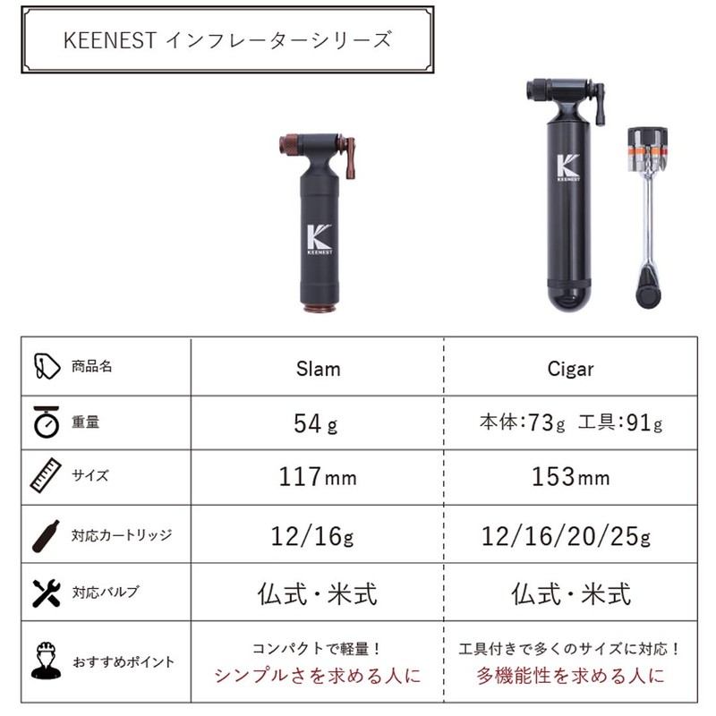 KEENEST Bicycle Air Pump, Cigar CO2 Inflator & Tool Set, CO2 Cylinder, Compact Size, Compatible with Road Bikes, Presta and American Valves, 0.4 oz (12/16/20/25 g) Cartridges (Can be used with Small Diameter Vehicles such as Mini Velos Without Problems)