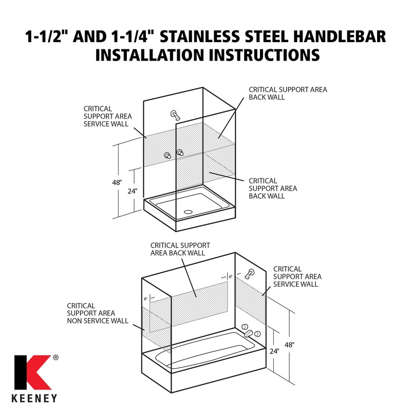 Keeney PP19340SG Stainless Steel Grab Bar 1.25 In. Dia. x 12 In. Exposed Screw, Sure Grip