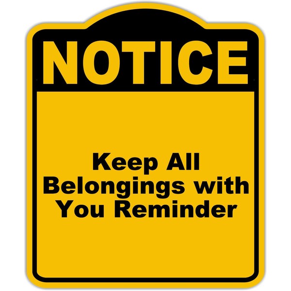 Keep All Belongings with You Reminder Notice Yellow Black Aluminum Composite Sign 8.5 x 10 inches