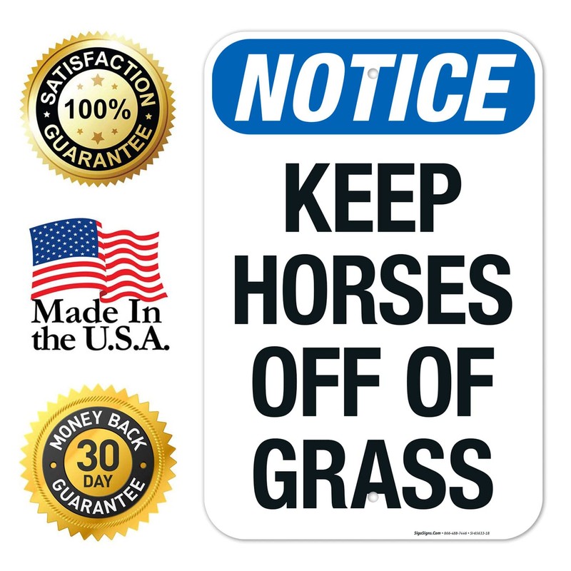 Keep Horses Off of Grass Sign, 12x18 Inches, Rust Free .063 Aluminum, Fade Resistant, Made in USA