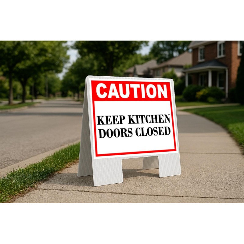Keep Kitchen Doors Closed Caution Folding Coroplast A-Frame Double-Sided 23in x23in