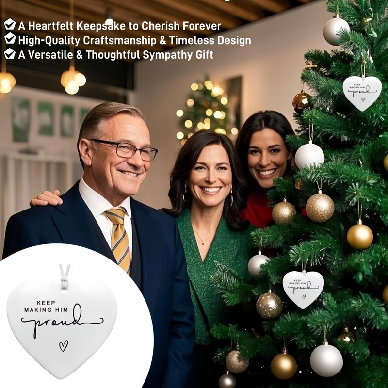 - KEEP MAKING HIM PROUD MEMORIAL ORNAMENT:Our thinking of you gifts are made of high-quality materials,with a fine touch and elegant luster.Every detail of this bereavement gifts has been meticulously polished to ensure its long-term beauty.The white porcelain surface of this thank you gifts is printed with warm words,conveying sincere emotions.Whether kept for personal use or given as a gift,our sympathy gift can become eternal tokens carrying precious memories