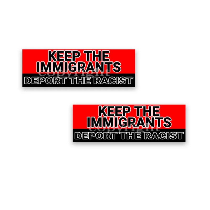 KEEP THE IMMIGRANTS DEPORT THE RACIST Bumper Sticker Decals 8" 2-pack