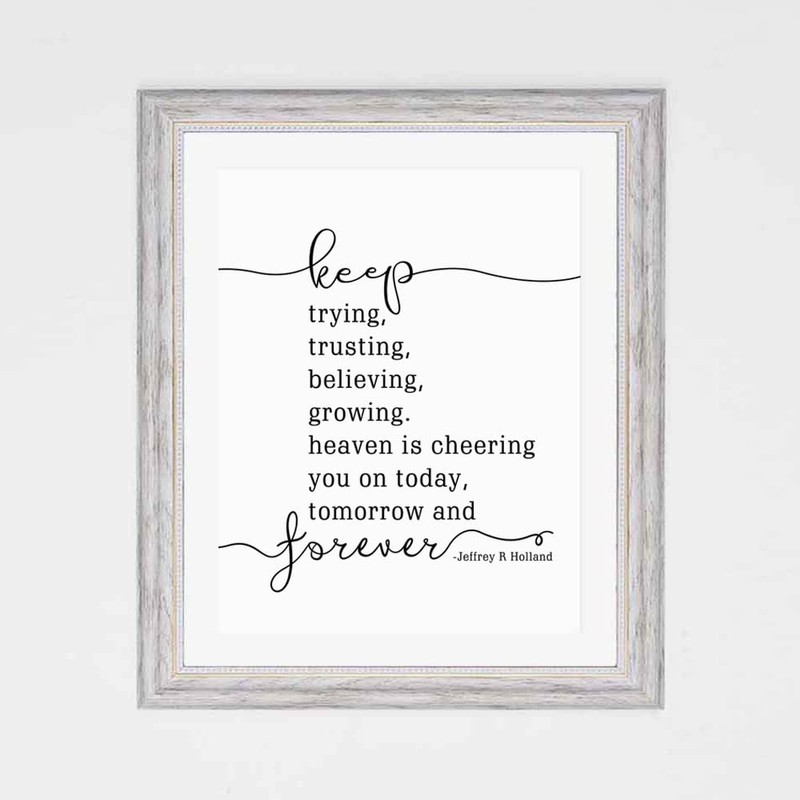Keep Trying Trusting Believing Growing Wall Art Kids Bedroom Wall Decor Heaven is Cheering You On Today Tomorrow Quotes Wall Decor for Bedroom 8x10 inch - UNFRAMED