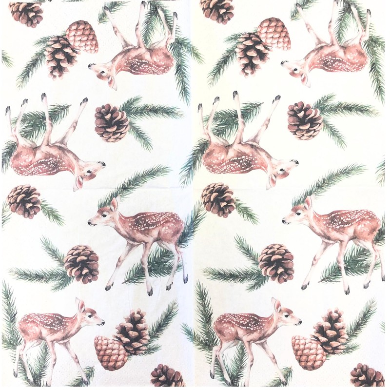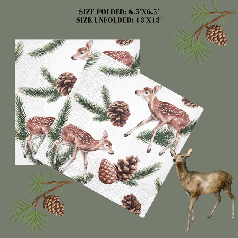 Keep Unique 20-ct 13x13 Christmas Paper Luncheon Decoupage Napkins, 3-Ply Servilletas Christmas Napkin for Art, Dinner and Party, Disposable Napkins Decor (Deers Cones)