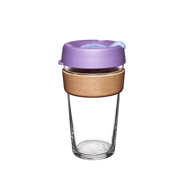 KeepCup Brew Cork, Reusable Glass Tumbler with Natural Cork, Grande Coffee Cup 16oz/454ml - Moonlight