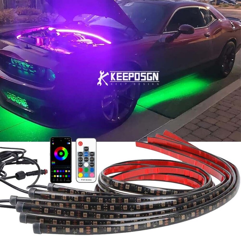 KEEPDSGN 6Pcs Car Underglow Strip LED RGB Underbody Light For Dodge Challenger SXT RT SRT