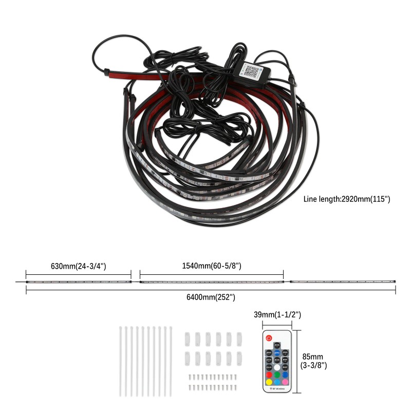 KEEPDSGN 6PCS Dynamic RGB Underglow LED Car Neon Strip Lights APP For Jeep Wrangler JK