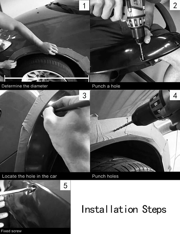 - 3. Punch holes in the original vehicle and the wheel eyebrow and fix with screws.